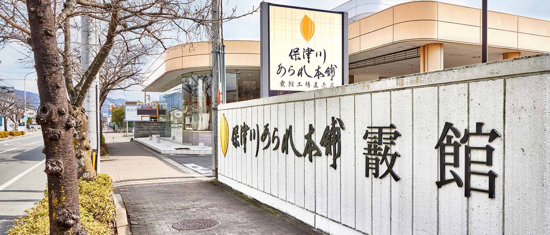 第二工場霰館に隣接して保津川あられ本舗霰館工場直売店を開店